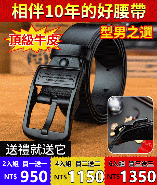12分鐘前男士牛皮腰帶!讓您出門穿戴有面子!真皮腰帶,彰顯男人魅力 - 頭層純牛皮男士皮帶【超夯活動】買二送二$1150