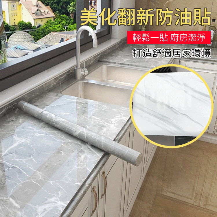 7分鐘前限時搶購 廚房貼紙防水防油大理石家具貼膜自粘牆紙瓷磚灶台桌面櫃子保護膜 - 4卷,僅需NT$999